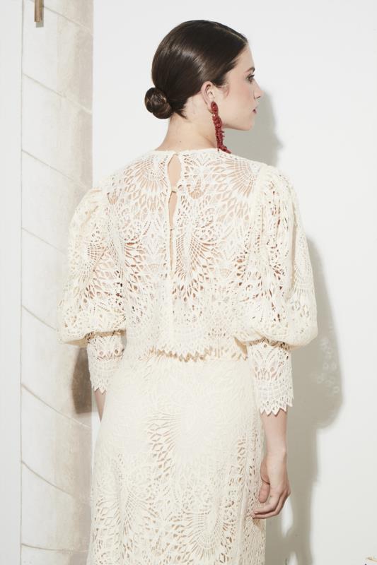 PANAMBI FALDA EVASE GUIPUR CINTURILLA TAFETAN POLI