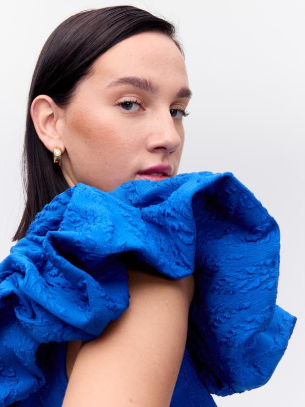 MIOH VESTIDO PETALO DAMASCO DE VOLANTE ESCOTE EN AZUL ESPIGA